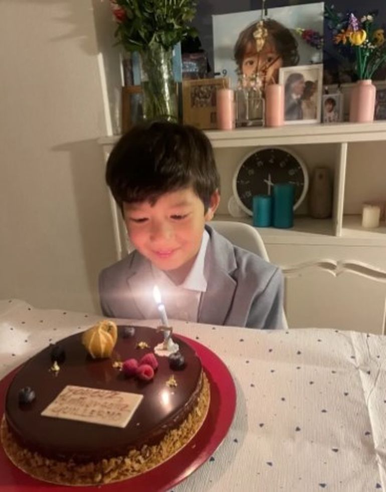 En otra de las fotografías compartidas por Phiang, se puede ver a Guillermo Junior sonriente frente a una torta de chocolate con algunos frutos rojos, una vela azul y el número 7 en color dorado.