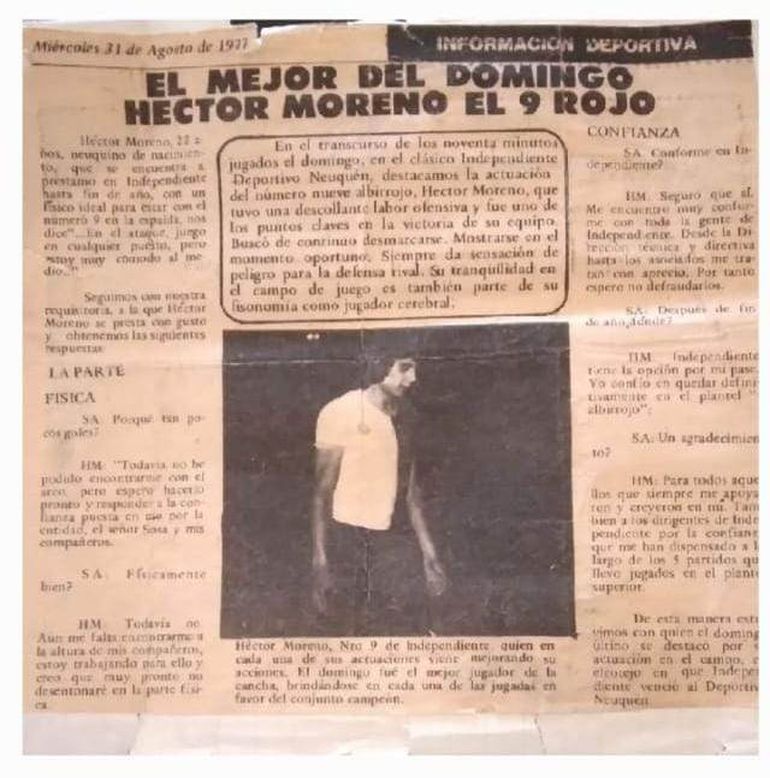 Fue así que llegó a Independiente de Neuquén, y compartió equipazos con apellidos clave en la mejor historia albirroja: Ganuzza, Zanollo, Dehais, Larroque, Novellino, Doroni, y el enorme Carlos Patón Raschia, compinche en el área rival. Fue, por ejemplo, campeón con Independiente en 1977 y pasó luego por Alianza de Cutral Co y Atlético Neuquén. Melena al viento, celebró goles y más goles en las polvorientas canchas de la liga. En aquellos años, muchos jugadores del fútbol grande de la Argentina llegaban a la región.