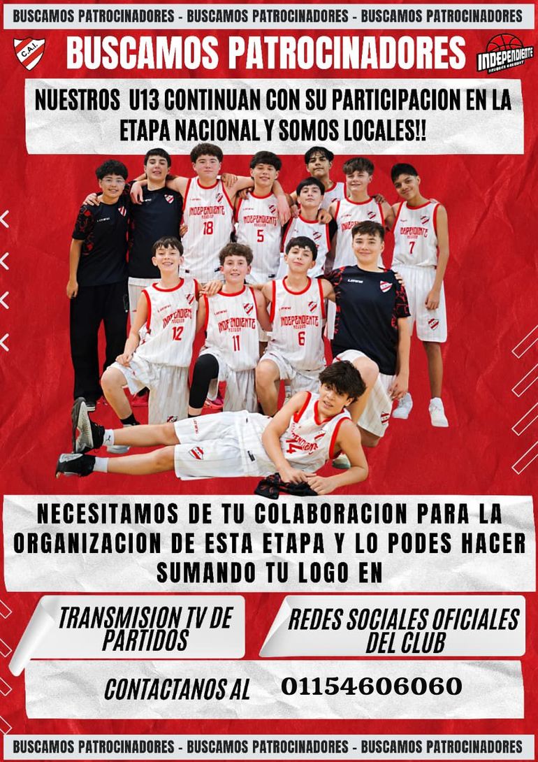 El equipo de básquet juvenil Sub 13 de Independiente de Neuquén jugará este fin de semana en condición de local, en La Caldera de la capital neuquina, el cuadrangular nacional frente a Caza y Pesca, Vélez y Deportivo Viedma.