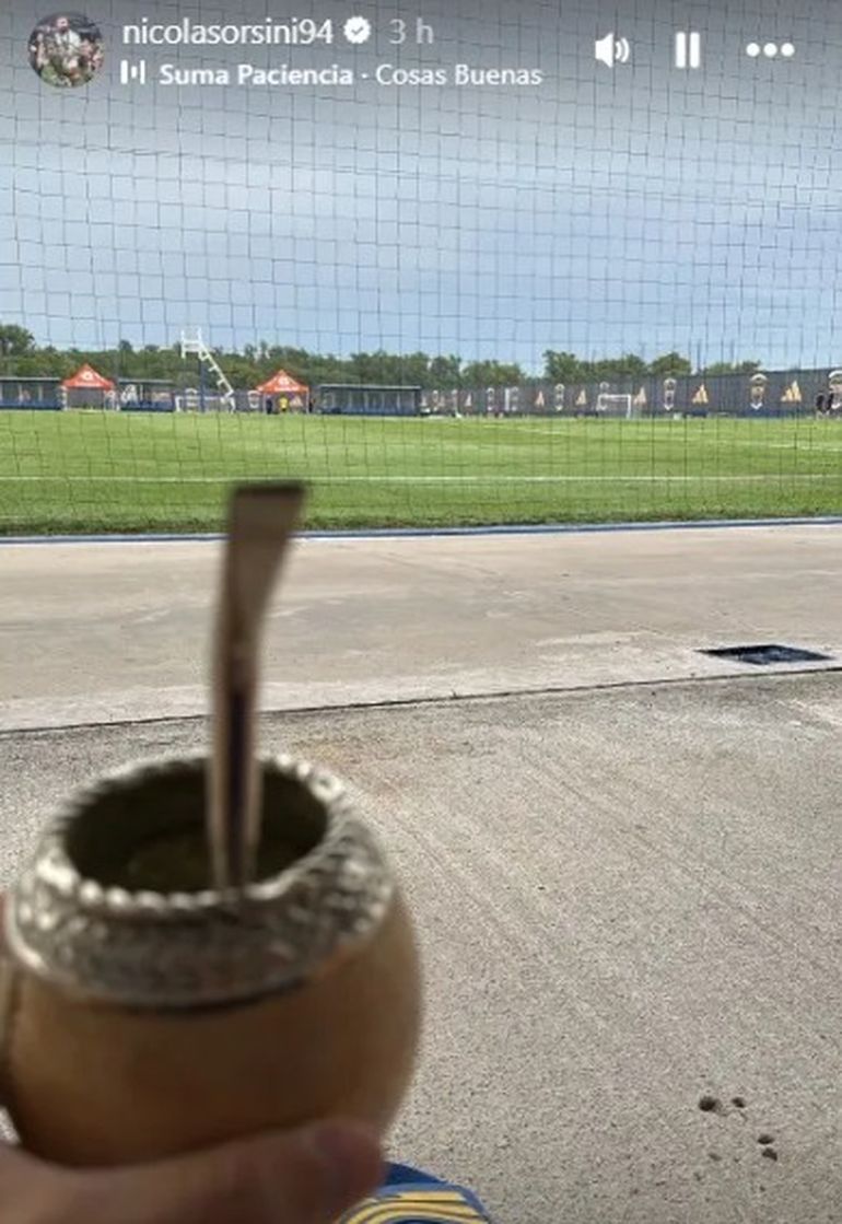 Fue Nicolás Orsini, quien a un costado de la cancha donde entrena el plantel xeneize compartió una imagen donde mostró un mate en la mano y una ojota con los colores de Boca. A su vez, lo llamativo fue el título de la canción que acompañó la publicación: Cosas buenas de la banda Suma Paciencia.