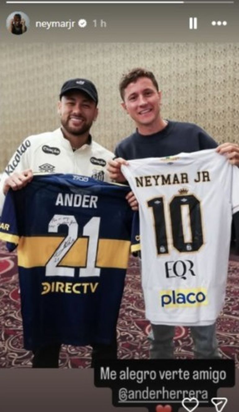 Entre las historias de Instagram que aparecieron, se conoció que también estuvo con el crack brasileño Ander Herrera, con quien compartió plantel en el París Saint-Germain. "Me alegra verte", escribió Ney en las historias de la red social dejando en claro su felicidad por reencontrar al jugador.