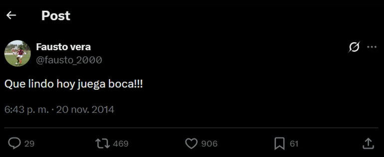 “¡Que lindo, hoy juega Boca!” redactó un joven Fausto Vera de tan solo 14 años, que todavía se encontraba jugando en las inferiores del “Bicho”.