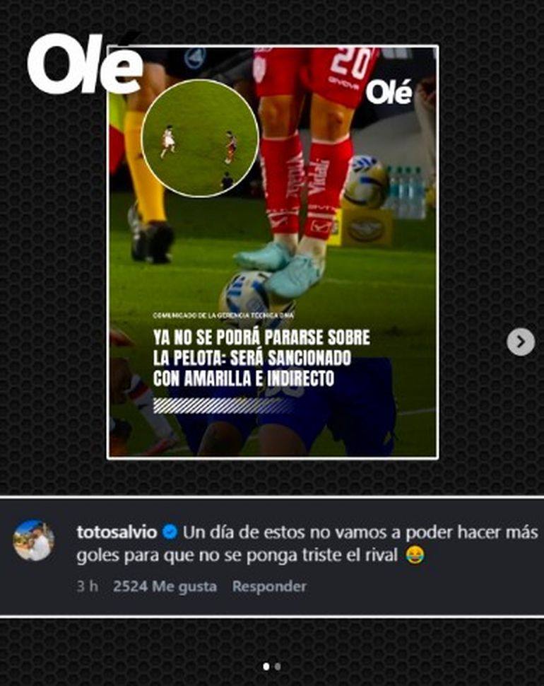 "Un día de estos no vamos a poder hacer más goles para que no se ponga triste el rival", escribió jugador en los comentarios de un posteo que realizó sobre el tema el diario Olé.