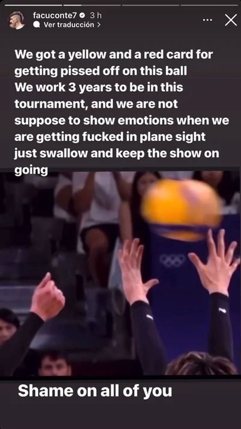 La calentura de Facundo Conte tras la derrota de la selección de vóley