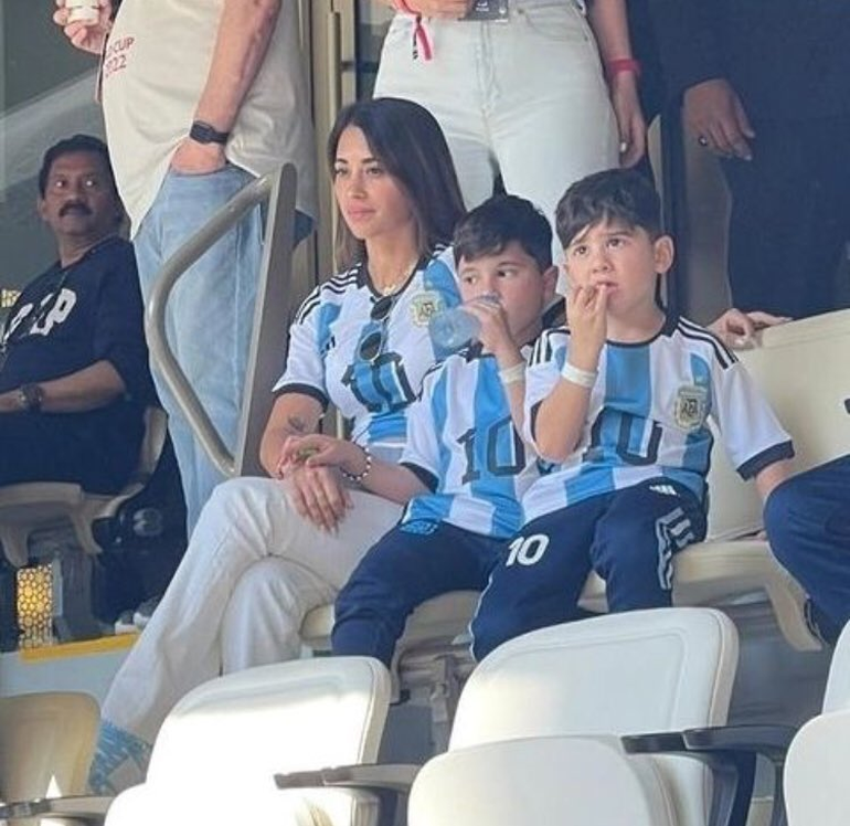 La empresaria textil observó el partido junto a sus tres hijos, Thiago, Mateo y Ciro. Luego de la alegría inicial, por el gol de la Albiceleste, las tribunas del estadio de Doha se llenaron de rostros con gestos de preocupación. Así se puso ver a Antonela, en una foto que le tomaron sentada junto a dos de sus pequeños.