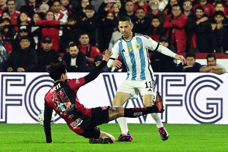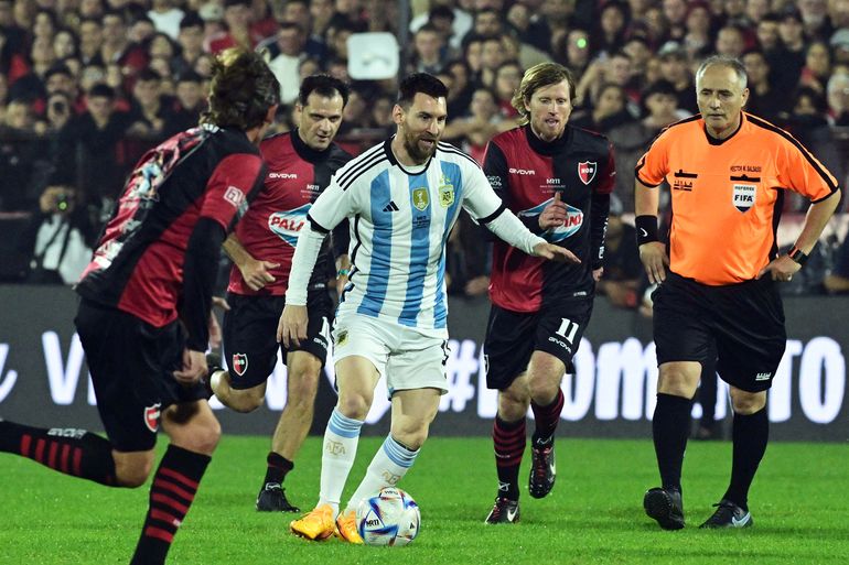 La despedida de 'Maxi' consistió en un atípico partido amistoso que un equipo de Newell's le ganó 7 a 5 a uno de la Selección, en el que la figura de la noche jugó un tiempo para cada uno.