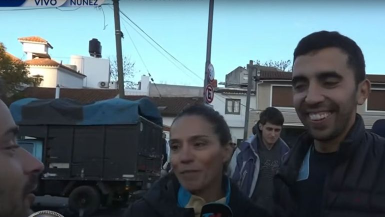 Una pareja del Alto Valle fue captada por las cámaras de TN en el ingreso al estadio. Como ellos nadie se quería perder el partido. Ella fue la primera en hablar, dijo que era Eliana, oriunda de General Alvear (Mendoza), pero con residencia en General Roca, Río Negro”. Como a muchos asistentes, les costó conseguir entradas.