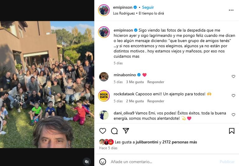 El pasado fin de semana el periodista tuvo una emocionante despedida con su círculo más cercano previo a emprender viaje a España donde iniciará un tratamiento médico experimental para afrontar la enfermedad. "Sigo viendo las fotos de la despedida que me hicieron ayer y sigo lagrimeando y me pongo feliz cuando me dicen o leo algún mensaje diciendo: "que buen grupo de amigos tenés", escribió en sus redes sociales.