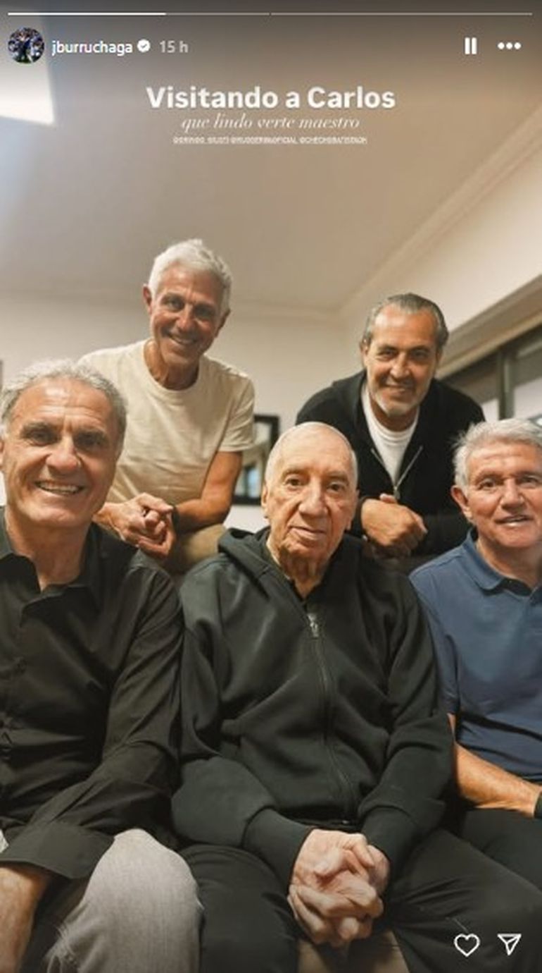 Por otra parte, Burruchaga también compartió una historia de Instagram dedicada a Bilardo tras el encuentro: "Visitando a Carlos. Que lindo verte, maestro", expresó en pocas palabras junto a una imagen donde se los ve a los cuatro campeones junto al ex entrenador. En la misma sintonía se expresó Batista en su cuenta personal: "¡Siempre agradecido Maestro!".