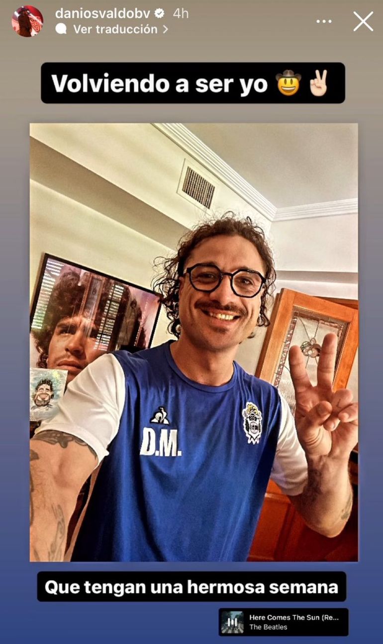 Daniel Osvaldo publicó una foto suya en una historia de Instagram, acompañado por la frase “volviendo a ser yo”, en la que se lo ve contento con la remera de Gimnasia de La Plata que usó Diego Armando Maradona en su paso como entrenador.