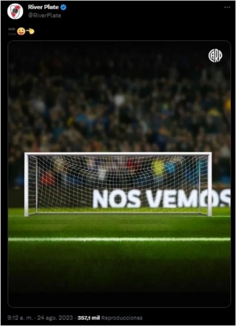 Es que River compartió la noticia en sus redes sociales a las 9:12, haciendo referencia a la fecha que se disputó la histórica final de la Copa Libertadores en el Santiago Bernabéu. La imagen que acompañaba el posteo mostraba el arco vacío donde el Pity Martínez marcó su recordado gol en Madrid y llevaba la inscripción "Nos vemos", acompañada por emojis que representan la popular canción "que loco que está" que la hinchada solía cantarle al jugador.