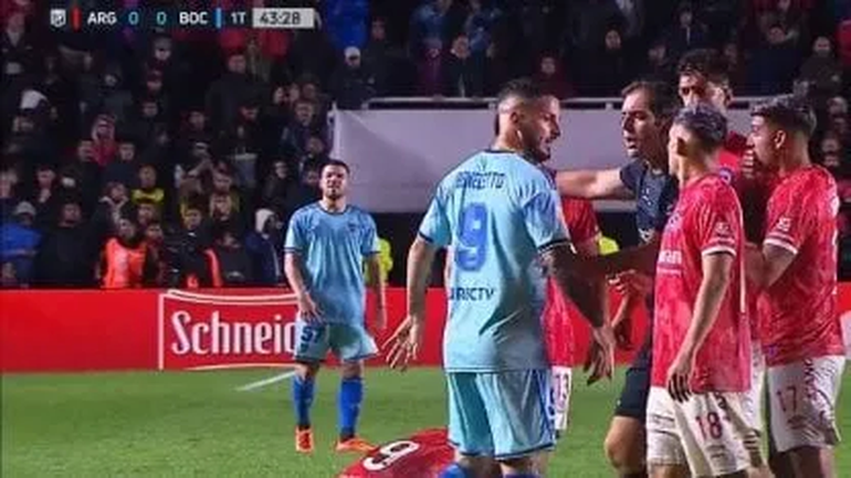 Más allá de la explicación que intentó dar, Santiago insistió en el pedido haciendo alusión a que hubo mala intención de parte del delantero. Al oír lo que hablaba él con el árbitro, el Pipa decidió intervenir para trenzarse en una fuerte discusión.