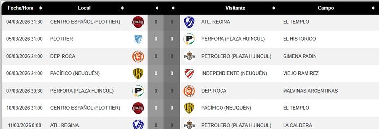 Centro Español recibirá este miércoles a Atlético Regina en un duelo de alto voltaje. Todos los partidos de esta semana.
