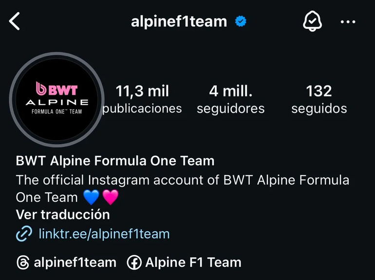 La escudería francesa tuvo un imponente crecimiento de seguidores en su Instagram desde que anuncio la contratación del argentino.