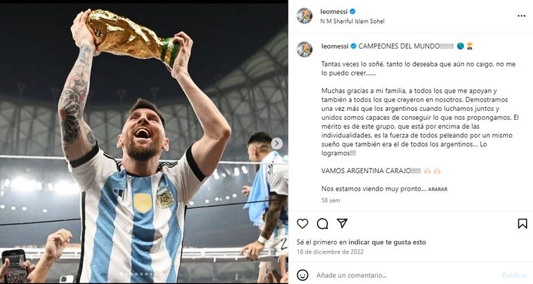 Cuál fue su posteo horas después de obtener la Copa del Mundo