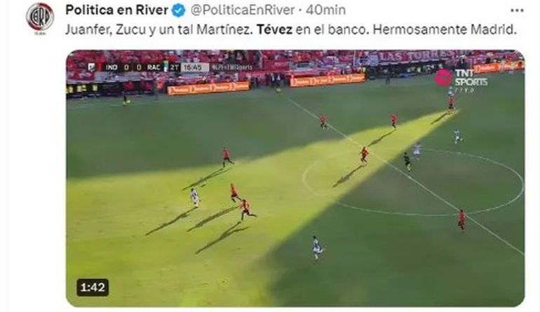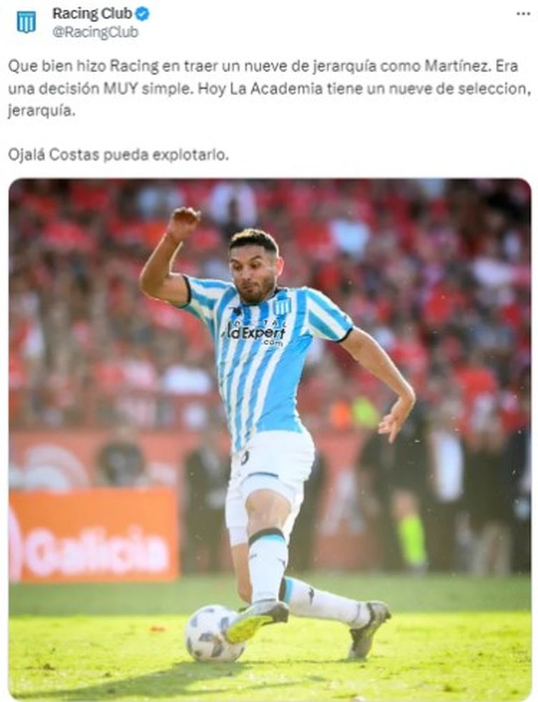 La Academia se impuso por 1 a 0 en una nueva versión del clásico de Avellaneda con gol de Adrián 'Maravilla' Martínez, quien estuvo cerca de jugar en el Rojo, aunque la dirigencia finalmente optó por llevar al ex Argentinos Juniors, Gabriel Ávalos. Este fue el primer motivo de cargada, desde las propias redes oficiales de Racing.