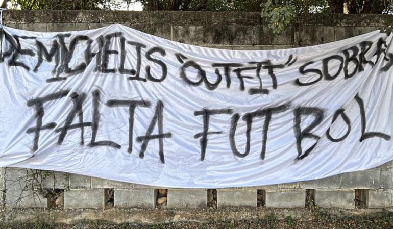 Sin embargo la hinchada sigue exigiendo mejores rendimientos con expresiones públicas que denotan un grado de enojo. En las últimas horas aparecieron banderas alusivas al rendimiento del DT y lanzaron una crítica: "Demichelis, outfit sobra, falta fútbol".