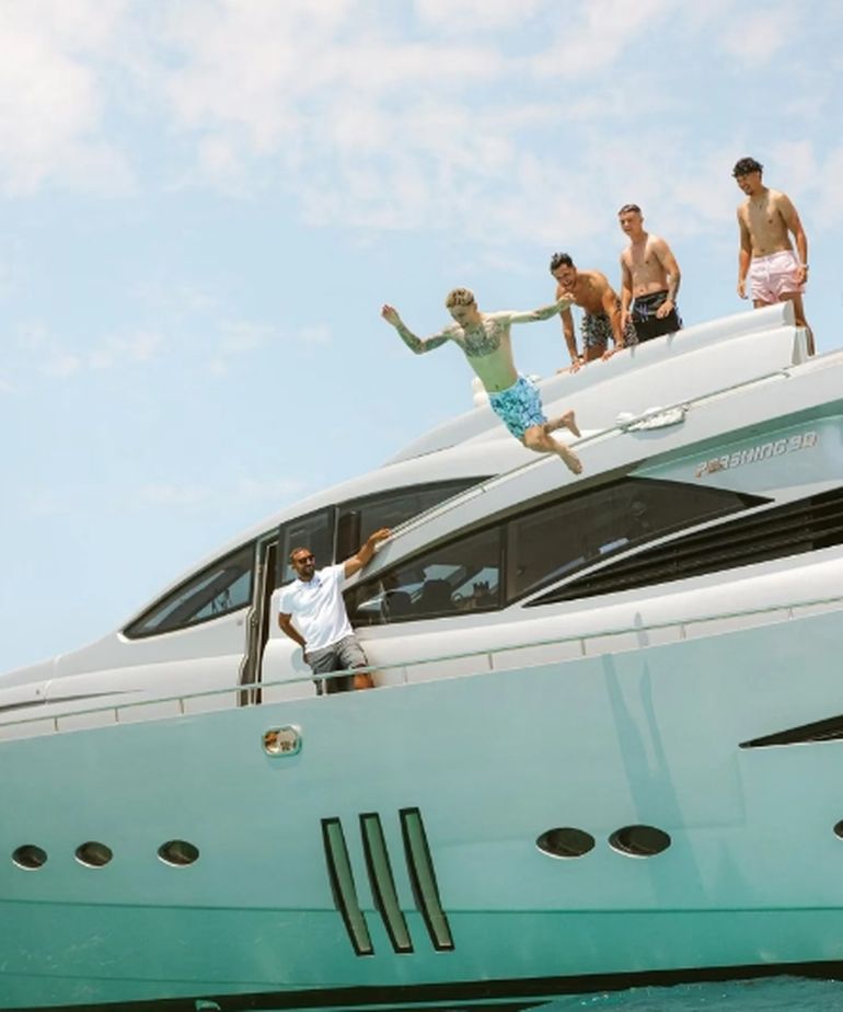 Es que una vez en Ibiza, el jugador sumó a cuatro de sus amigos para vacacionar y eligieron hacerlo en un yate, cuyo valor es de 70 mil dólares por semana. El mismo cuenta con una superficie de 27 metros y una capacidad para 8 personas.
