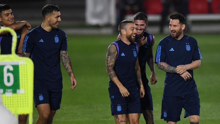 El capitán Lionel Messi fue el último en sumarse a las tareas y lo hizo de muy buen humor en un clima distendido, con Scaloni retirado del grupo y más pensativo, tal su habitual postura en los entrenamientos.