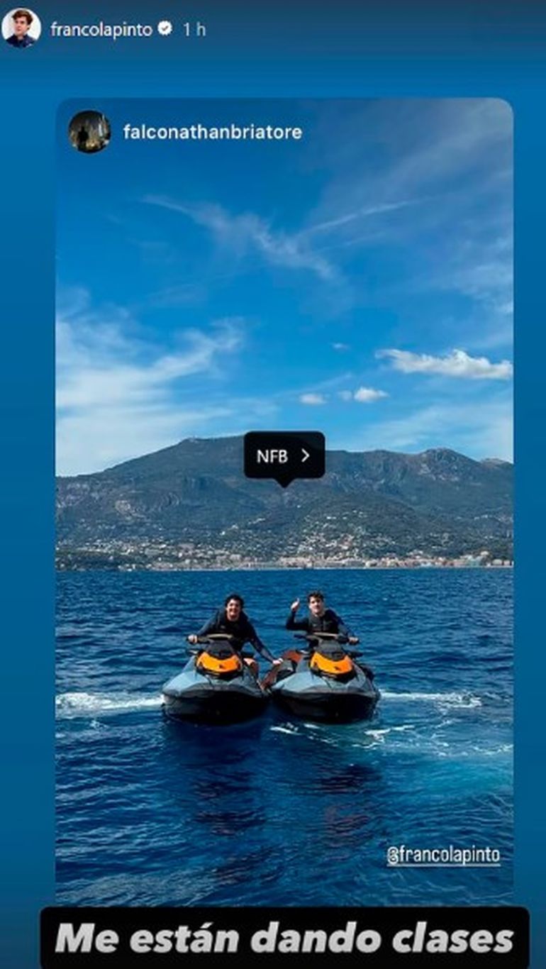 Más allá de los vaivenes en los pensamientos de Briatore, en la última semana se dio una situación alentadora que generó repercusión a nivel mundial. En las últimas horas Colapinto reposteó una historia de Instagram que compartió Falco Briatore, hijo del jefe de Alpine, disfrutando de una actividad especial en el mar donde fueron vistos montando una moto de agua cada uno.