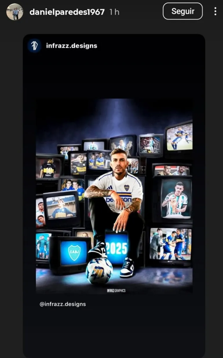 Esta vez, el protagonista indirecto fue Daniel Paredes, el padre del mediocampista, quien volvió a ilusionar a los hinchas xeneizes al compartir en su cuenta de Instagram una imagen de su hijo luciendo la camiseta alternativa de Boca.