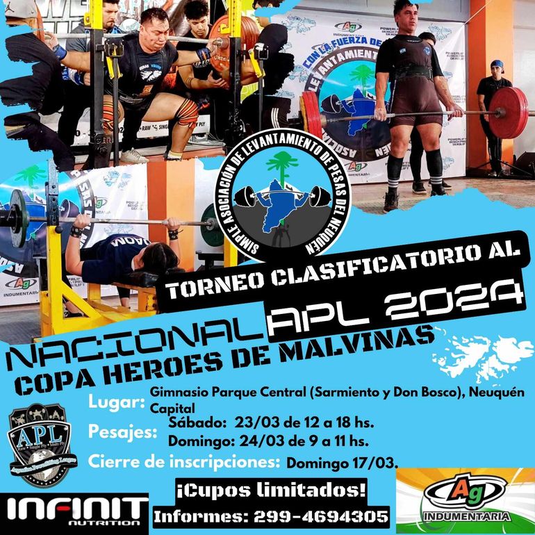 Junto con el grupo de trabajo de la Asociación de Levantamiento de Pesas de Neuquén están trabajando en la organización del torneo de Powerlifting, "Copa Héroes de Malvinas" para las próximas semanas. "Estamos trabajando desde hace muchísimo tiempo. Será el domingo 24 de marzo en el Parque Central", comentó Mansilla.