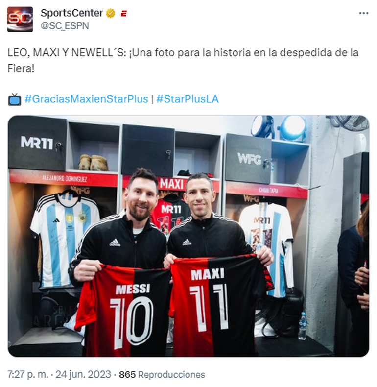 El astro del fútbol mundial Lionel Messi, en el día de su cumpleaños número 36, provocó el estallido del Coloso Marcelo Bielsa del Parque de la Independencia de Rosario, al ingresar al campo de juego para participar de la despedida de su amigo y excompañero en el seleccionado argentino, Maximiliano Rodríguez.