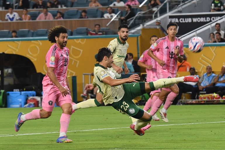 El acercamiento más peligroso del Palmeiras en la primera parte fue a los 31 minutos. Una pésima salida desde el fondo del Inter Miami generó la recuperación del equipo brasileño en el borde del área y, tras una buena jugada colectiva, el delantero Facundo Torres recibió sobre el costado izquierdo, enganchó y sacó un remate cruzado y rasante, que se fue rozando el poste.