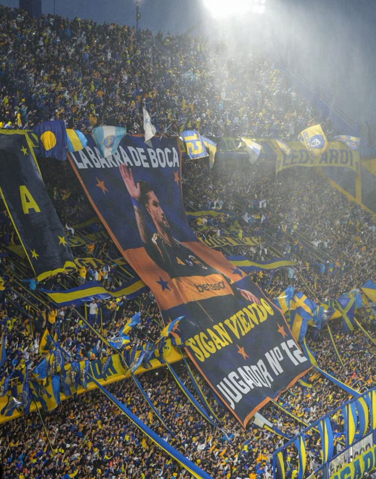 Al campeón del mundo, Leandro Paredes, le dedicaron aplausos particularmente cuando se movió en cada uno de los sectores de los cuatro costados. Y habría un reconocimiento especial en la salida del equipo: “Sigan viendo”, fue el particular lema escrito en un telón que se bajó con la firma de “La Barra de Boca” y la imagen del 5.