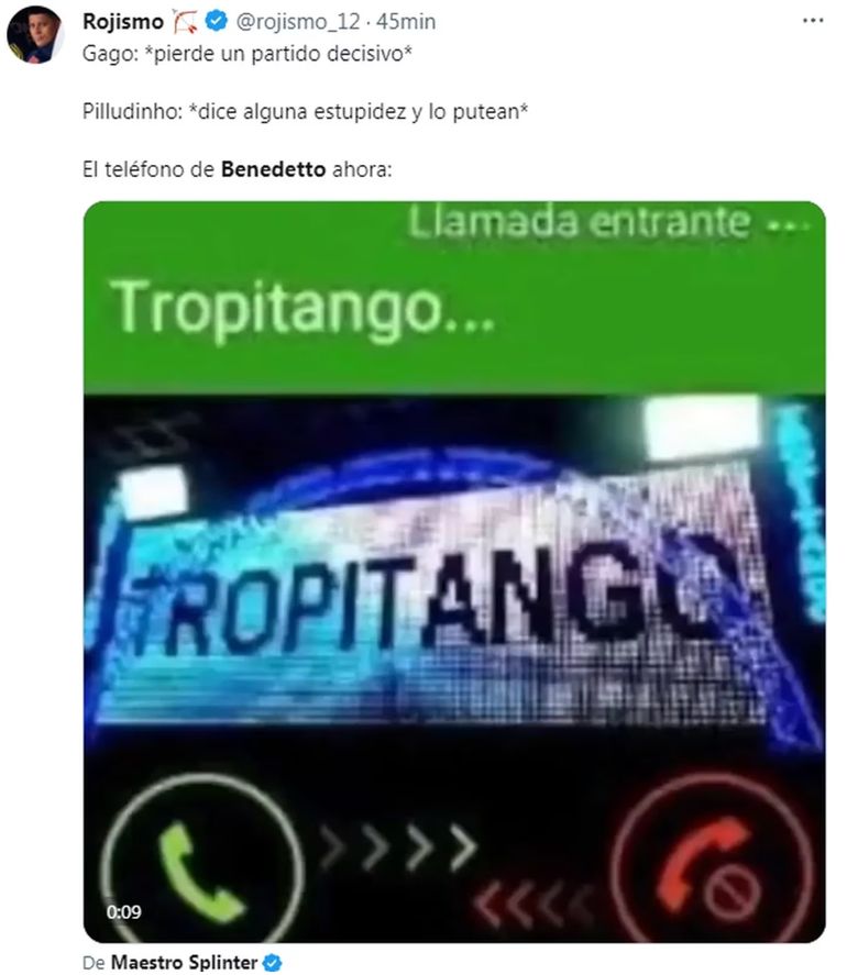 Menciones de Darío Benedetto y sus últimos penales errados, así como el recordatorio de los hinchas de Boca hacia los de River por haber quedado afuera en los octavos de final contra el Inter. Muchos además se acordaron del usuario de Racing que se estaba tatuando cada partido de la Academia en esta Copa Libertadores, augurando que el equipo de Avellaneda saldría campeón.