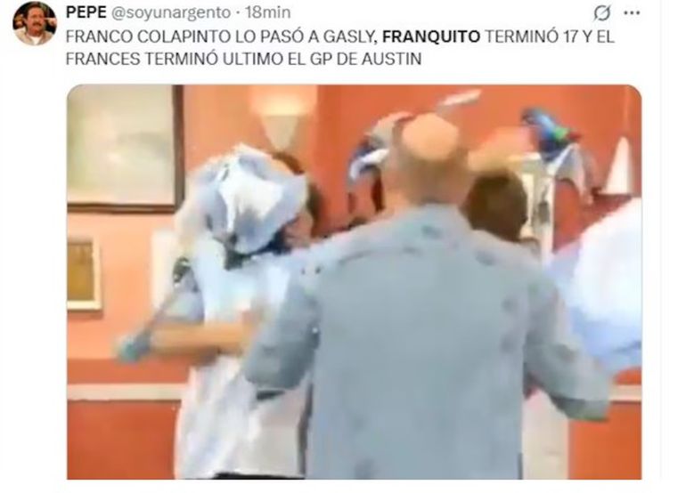 Durante la vuelta 54, Colapinto pidió permiso para pasar argumentando que Gasly era “demasiado lento”. A pesar del pedido de mantener posiciones, decidió superarlo por adentro en la curva 1 y sostuvo la posición hasta la bandera a cuadros. El movimiento dejó al francés en la última posición y evidenció las diferencias dentro del equipo.