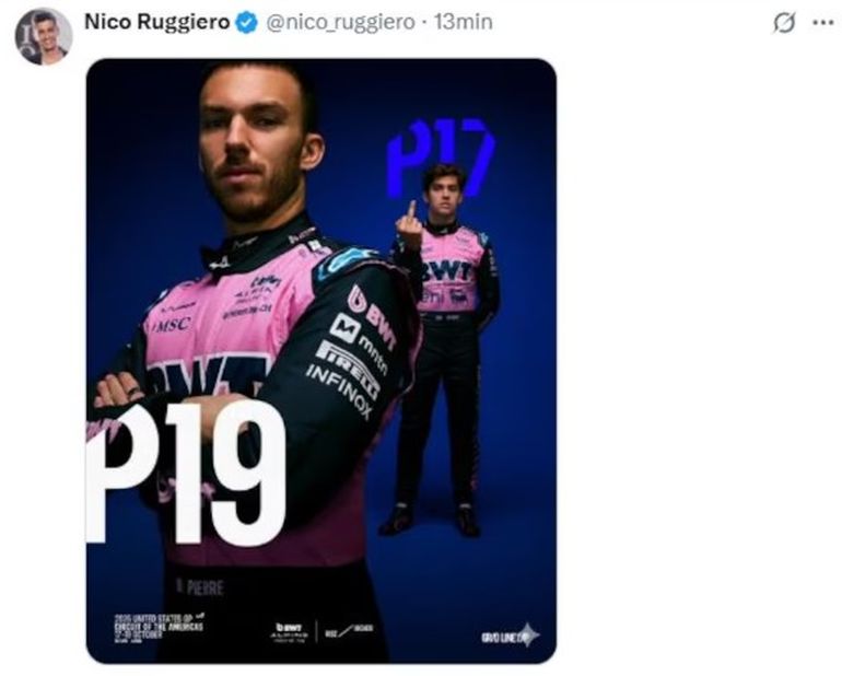 Gasly, consultado por Motorsport, evitó polemizar, aunque dejó entrever su molestia: “Hice mi parte, cumplí con lo que me pidieron. Ni siquiera debería haber estado ahí. Me importa más el tema del rendimiento que este tipo de cosas”, sostuvo. Luego agregó: “Somos simplemente demasiado lentos. Lo demás se hablará dentro del equipo. No estoy contento con la carrera ni con nuestro ritmo, tendremos que hacerlo mejor”.