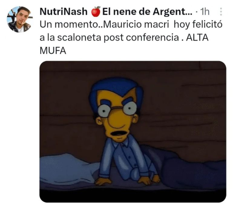 Sin embargo, también aparecieron otros nombres como posibles causantes de la derrota, desde Carlos Maslatón quien estuvo en el estadio, hasta Mauricio Macri que había salido a apoyar a Lionel Scaloni horas antes.