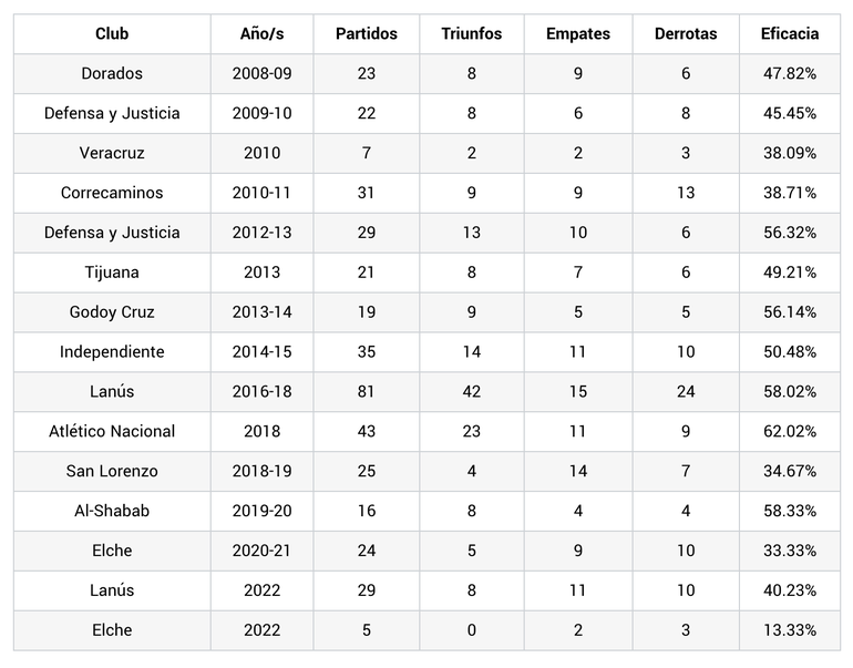 Si se consideran los últimos 99 partidos de Almirón como entrenador, entre San Lorenzo, Lanús, Elche y Al Shabab, solo ganó 25 partidos, 40 empates y 34 derrotas.