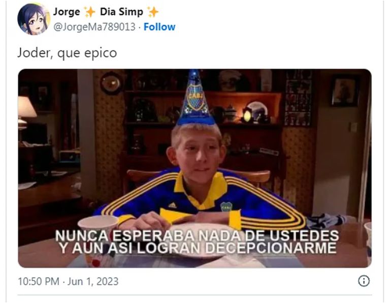 “Nunca esperaba nada de ustedes y aún así logran decepcionarme”, fue lo que escribió un hincha de Boca reviviendo uno de los memes más conocidos de la red, aunque esta vez, con la camiseta del Xeneize. “A ver bultos, hagan algo”, escribió otro con la imagen de Krusty el payaso gritando.