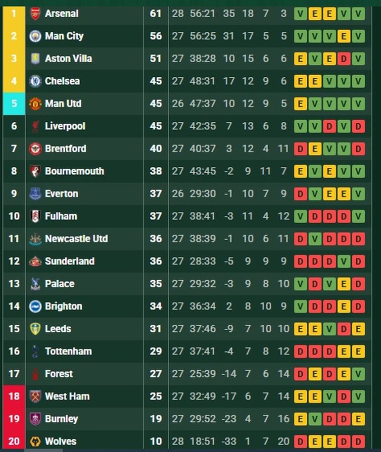 En el partido estelar de la fecha 27, Arsenal aplastó a Tottenham como visitante y lo goleó por 4 a 1. El puntero de la Premier tuvo los dobletes de Eberechi Eze y Viktor Gyökeres para imponerse de forma contundente.