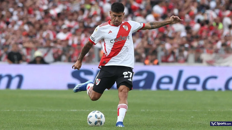Con Germán Pezzella y Marcos Acuña nuevamente diferenciados, situación que ya los descarta para reaparecer el viernes en el estadio Único, Enzo Díaz en recuperación de la intervención quirúrgica por una hernia inguinal y Leandro González Pirez obligado a cumplir una fecha de suspensión tras la roja que vio en el final del partido ante Independiente Rivadavia, River también perdió al único lateral suplente que le quedaba en el plantel, con Bustos y Casco como titulares.