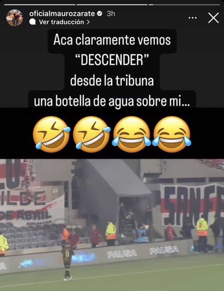 Finalizado el partido, cuando Mauro y compañía caminaban hacia el túnel cercano a las tribunas -para dirigirse al vestuario visitante-, le lanzaron una botella con agua. Alguien se pasó de la raya y, transcurridas las horas, el futbolista contestó a través de redes sociales.