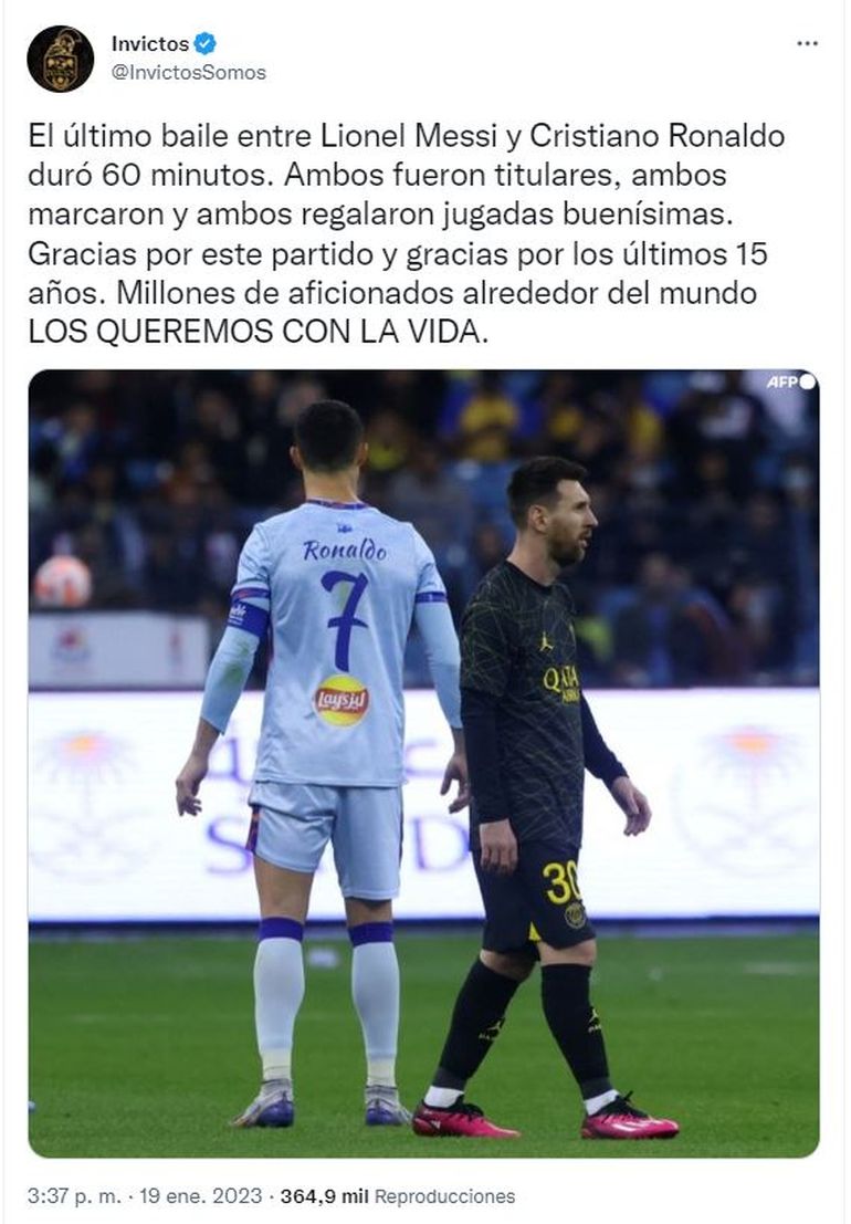 Las estadísticas entre el argentino y el portugués quedaron de la siguiente forma: 17 victorias para Messi, 11 para Cristiano y 9 empates.