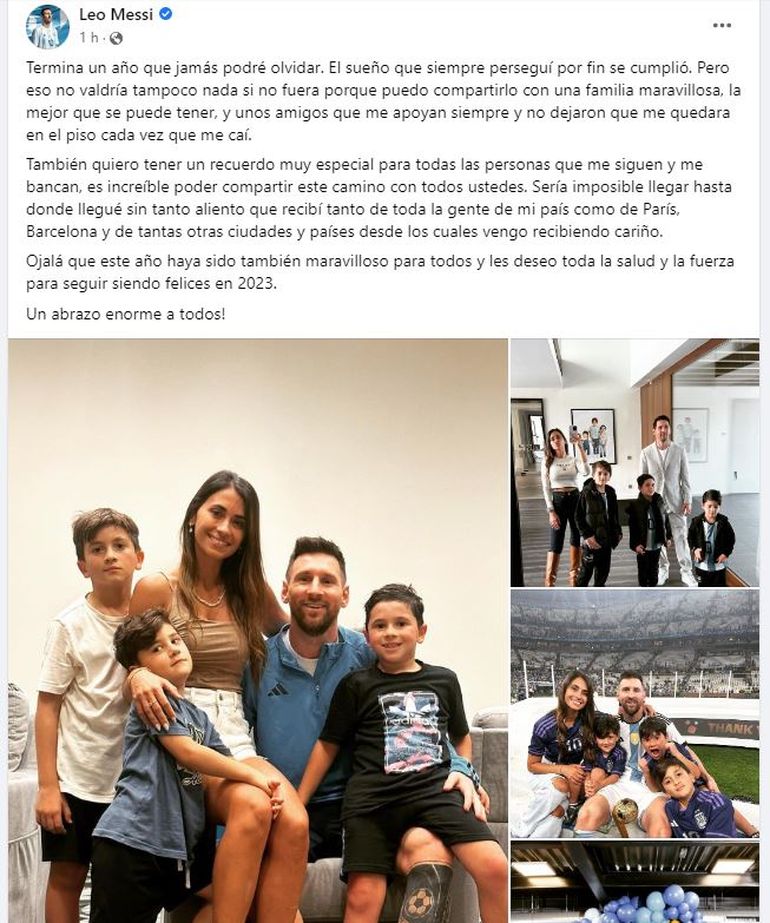 “Ojalá que este año haya sido también maravilloso para todos y les deseo toda la salud y la fuerza para seguir siendo felices en 2023. Un abrazo enorme a todos!”, finalizó Messi.