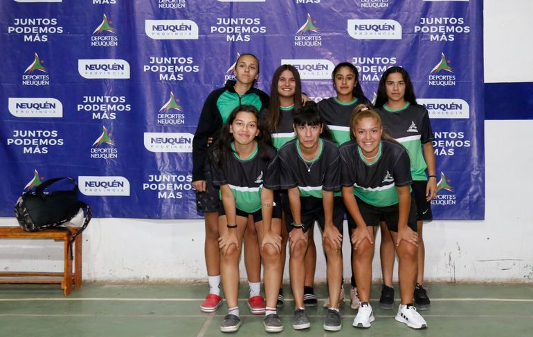 Fútbol femenino: Soledad Gamboa, Alaniz Ranquehue, Lourdes Mora, Abril Puñi, Jazmín Puñi, Juliana Russo, Delfina Ovalle. DT Cecilia Bartolini.