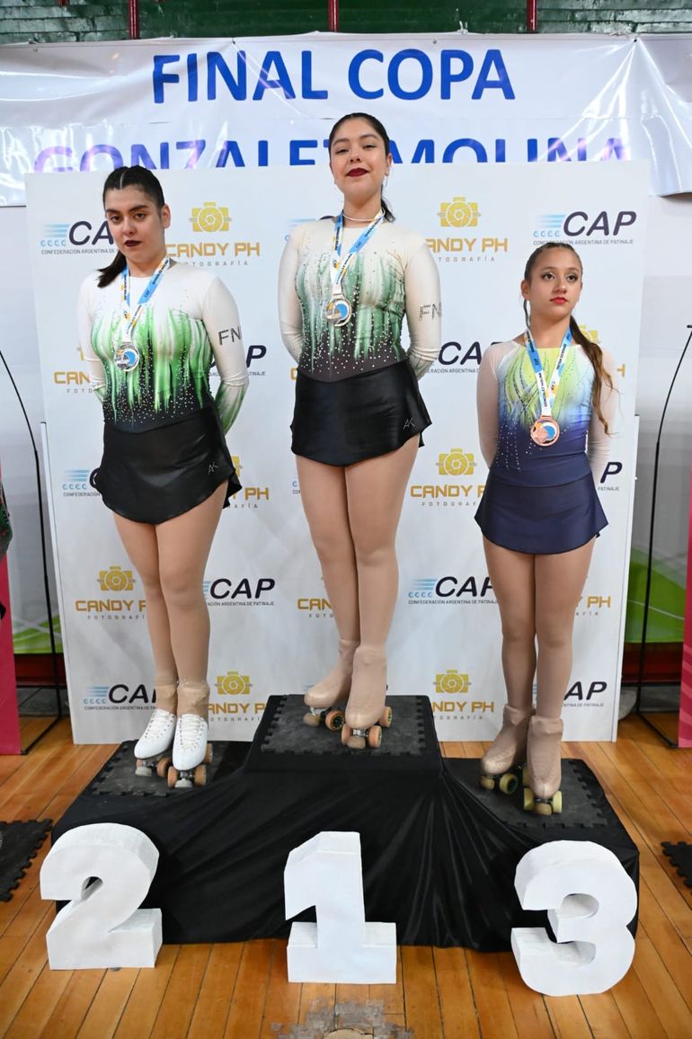 Neuquén sumó las primeras medallas en la Copa Argentina “Ernesto González Molina” de patín artístico, que se está disputando en el estadio Ruca Che. La Federación Neuquina –este es un certamen que agrupa a las federaciones- logró subir al podio en tres pruebas.