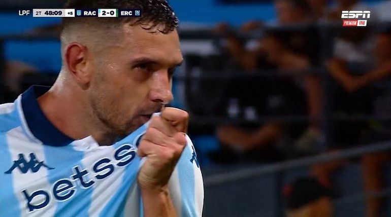 El delantero le dio la victoria a Racing ante Estudiantes de Río Cuarto, en la continuidad de la fecha 11 del Apertura.