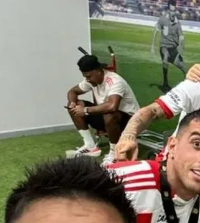 “El delantero venezolano Salomón Rondón a un costado. La foto que se volvió viral en el mundo River”, escribió el periodista junto a la selfie grupal.