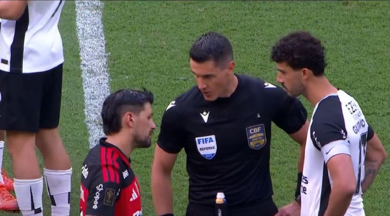 Desde el VAR llamaron al árbitro Rafael Rodrigo Klein y, luego de revisar la imagen, el juez consideró que el golpe de Carrascal sobre Breno Bidon, el rival que intentaba marcarlo, fue adrede, determinando su expulsión.