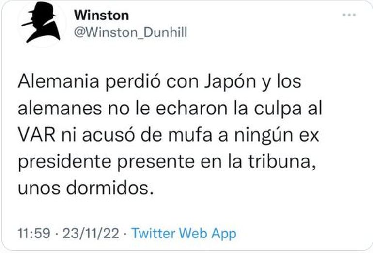 Ahora, Alemania debutó con derrota ante Japón por 2 a 1 y nuevamente el humor popular se acordó de el ex presidente argentino, que considera una potencia al equipo teutón pero cayó en su debut.