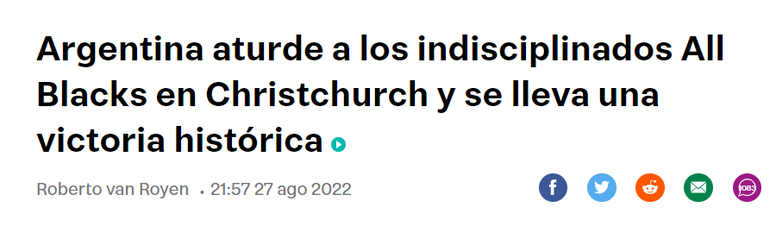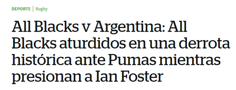 "No sería exagerado decir que los sumos sacerdotes del rugby neozelandés debieron sentir que se habían topado con un espectáculo de terror, y que se habían convertido en los protagonistas, después de lo que se desarrolló ante sus ojos. Esta, recordemos, era la primera victoria de Argentina en suelo neozelandés. Qué pesadilla. Se harán muchas preguntas, de nuevo, sobre sí Foster es el hombre adecuado para ser el entrenador de este equipo hasta el Mundial", sentenció Knowler.