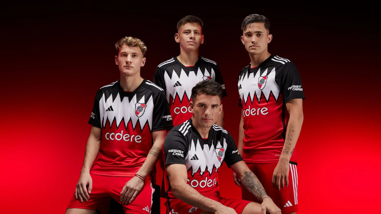 La nueva casaca, que ya está en las tiendas oficiales, cuenta con una base de color rojo hasta el pecho, allí aparece el blanco y en la parte superior -hombros, mangas y cuello- predomina el color negro. Lo distintivo son líneas diagonales que forman un dibujo poco habitual, de estilo retro.