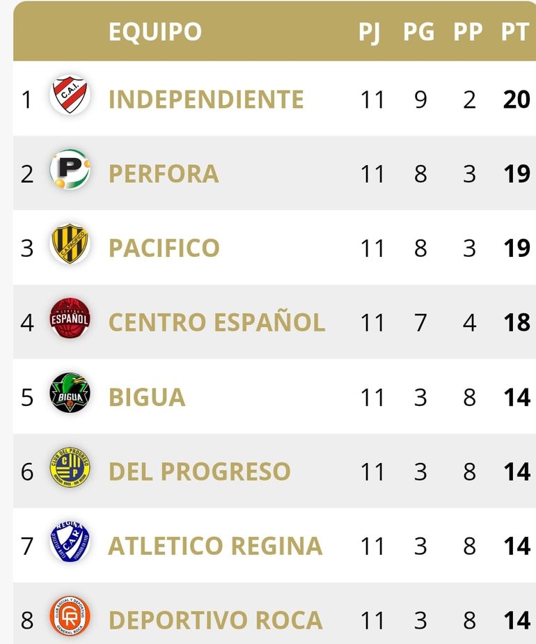 Quedan tres fechas en la fase regular del Pre Federal de básquet y solo resta saber el orden en el que terminarán los primeros cuatro y los últimos cuatro de la tabla. De cara a los playoffs, por ahora Independiente de Neuquén sigue mejor perfilado, porque tras ganarle a Biguá continúa como puntero y de los partidos que le quedan, dos son en casa contra Del Progreso y Pérfora.