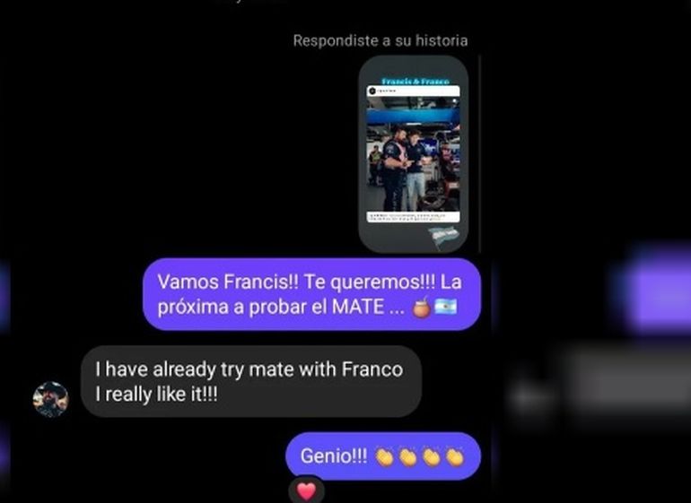 Algunos fanáticos de Colapinto comenzaron a escribirle en redes sociales al jefe de mecánicos diciéndole que ahora debería probar mate, a lo que el propio Francis contestó: “ya probé el mate con Franco y me encantó”. Ahora resta saber quién ocupará su lugar y ver cómo Franco se lleva con esta nueva persona en la estructura.